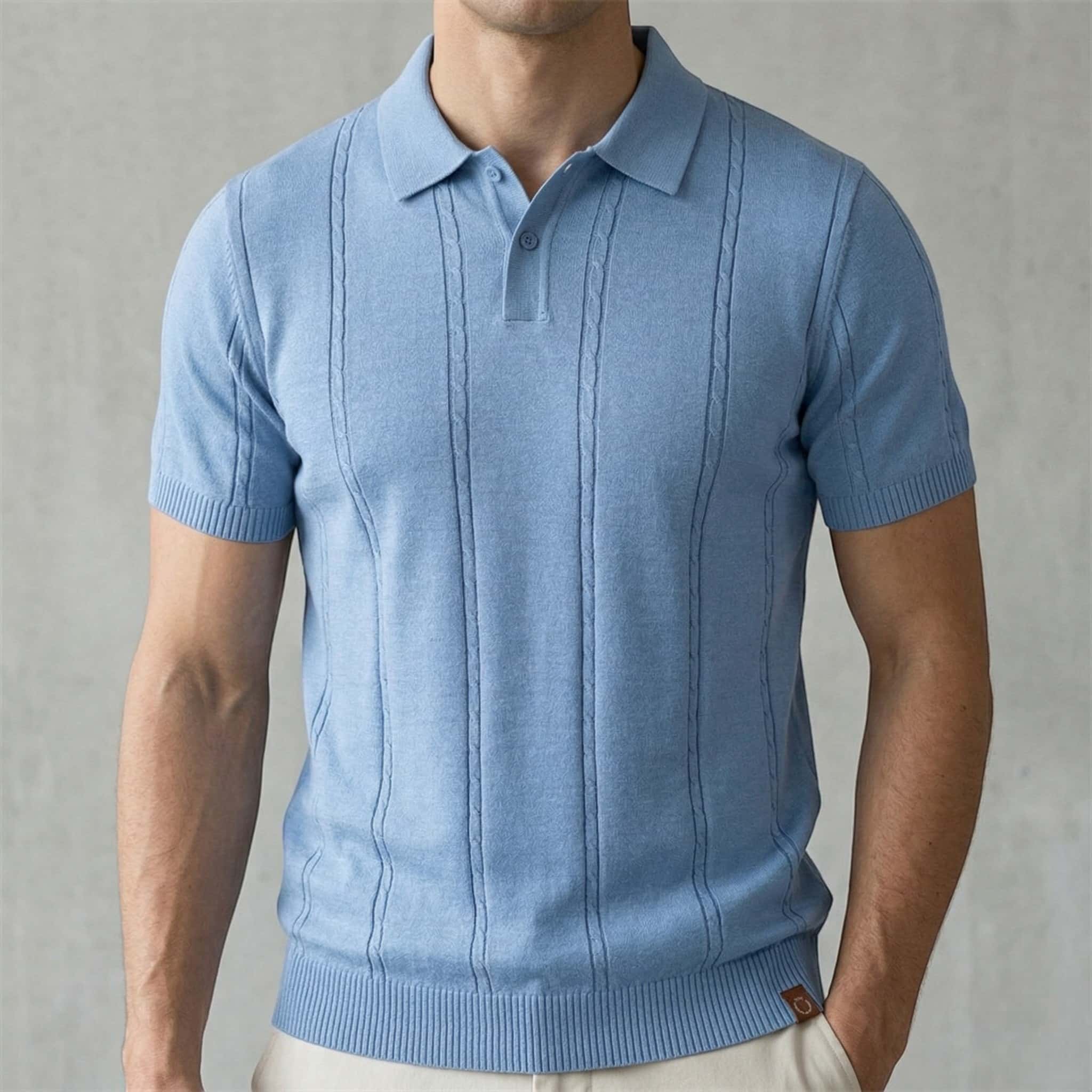 A solid knit polo with a subtle vertical texture and soft structured feel, built for everyday wear, smart casual styling, and clean off-duty outfits.