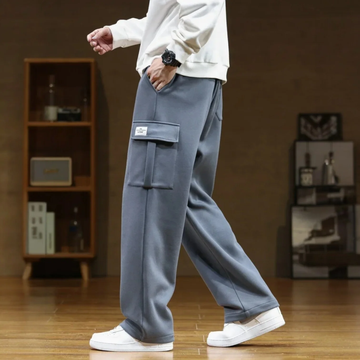 Relaxed wide-leg sweatpants with a straight silhouette and a comfortable everyday feel. Designed with an elastic drawstring waist and functional side pockets, made from a smooth cotton-blend fabric with a clean drape.