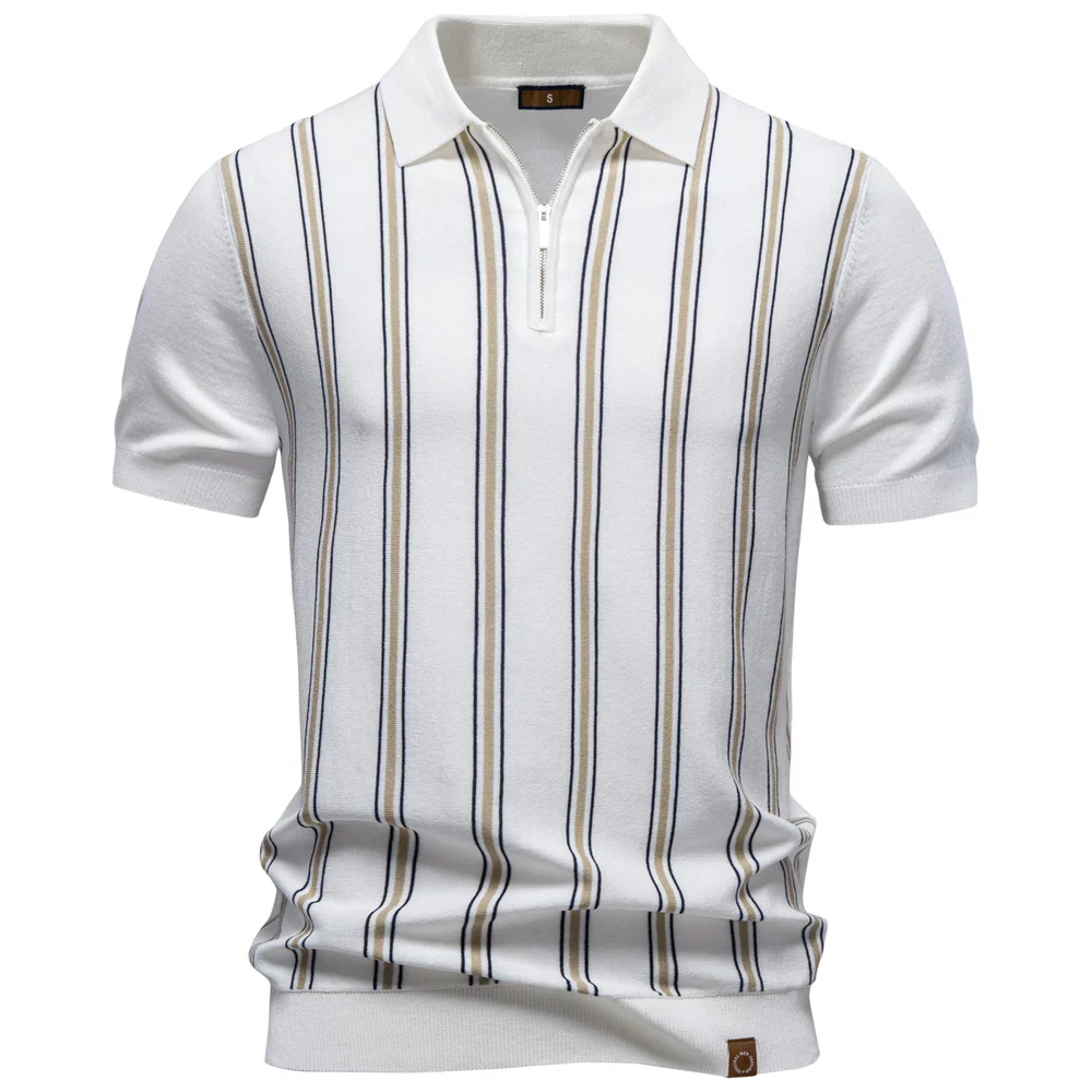 A retro stripe knit polo with a quarter-zip collar and soft lightweight fabric, built for everyday wear, casual styling, and off-duty looks with a bold vertical pattern.